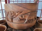 Beautiful Hand Carved Mid Century Wood Punch Bowl Set With Lazy Susan