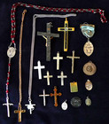Mixed Lot Of Vintage 1950's Religious Cross & Crucifix Pendants Medallions