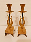 Vintage Pair Solid Brass Shabbat Candle Holders, Brutalist Style.