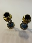 Vintage Pair Of Brass And Green Candle Holders Made In Israel 3 Inches Tall