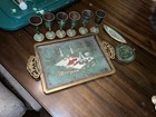 Vintage Hand-painted Judaica Shabbat Tray W/ Pair Ceramic Candlesticks Set