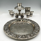 Karshi Judaica Silver Plated Kiddush Wine Fountain Set, 9.5" Diam.