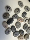 Vintage 25 Pc Ceramic Rune Stone Set Ancient Norse Viking Pagan Symbols / Bag