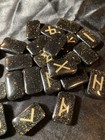 Mini Elder Futhark Rune Set For Divination And More - Black With Gold Accents