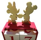 Disney Mickey And Minnie Wooden Valentines 8.5” Block Desk Gold Red Calendar