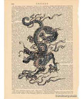 Chinese Dragon Art Print On Vintage Book Page Asian Oriental Office Home Decor