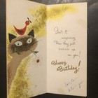 Vtg Birthday Greeting Card Adorable Siamese Cat Watching Birdie Cuckoo Clock