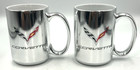 Set 2 Corvette C7 Coffee Mug Flags Logo Emblem Silver Metallic Cup 15oz Stingray