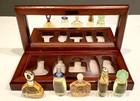 Vintage Wooden Box Set Miniature Perfume Bottles