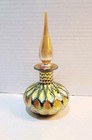 Vtg Signed Murano? Hand Blown Gold Flake Glass Perfume Bottle W/ Black 4" T