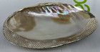 Vintage Mother Of Pearl Shell Tray Dresser Or Trinket Dish Silverplated Rim Trim