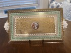 Vintage Imoge Made In France Trinket 8 X 2 Inch Tray Blue Floral Design Gold