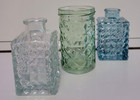 3 Diamond Point Decorative Bottles Teal Green And Clear 3.5 And 4 Inches