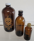 Lot Of 3 Deep Brown Decorative Bottles Large With Skull Design S M L
