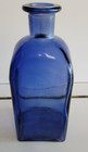 1 Decorative Cobalt Blue Square Bottle Solid Design 8.75 Inches Holds 32 Ozs