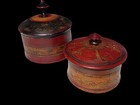 Vintage Ruby Red Small Apothecary Jar Rough / Textured Finish With Lid Set Of 3