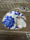 Blue Floral Shell Decorative Trinket Dish With Gold Trim