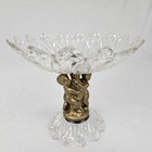 Vintage Cut Glass Crystal Compote Pedestal Bowl With Brass Cherubs Regency