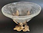 Vintage Crackled Glass Compote Bowl W/ Brass Cherub Stand Hollywood Regency/deco