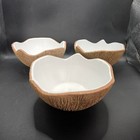 Hj! Coconut Half Ceramic Bowl Set Textured Husk Like Organic Modern Tiki Decor