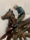 Vintage Cast Iron Door Stop Equestrians On Horseback Racing Jockey On Horse - Lg