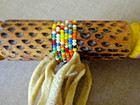 Native American Rawhide Rattle With Blue Bird (may Be A Thunderbird) 16"