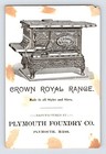 Victorian Trade Card Crown Royal Range Brattleboro Vt Plymouth Ma 3.5" X 5"