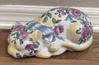 Vtg Chinese Hand Painted Floral Sleeping Reclining Cat Porcelain Figurine 10"