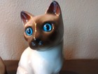 Vtg Siamese Cat Figurine Brown Mcm Ceramic Kitty Whiskers Collar Brinns Japan