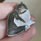 Vtg Persian Cat Tuxedo Enamel Lapel Pin Black White Longhair Feline
