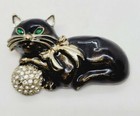 Cat Pin Black And Gold Cat Pin Brooch With Rhinestone Collars Works Perfect