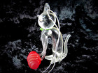 Crystal Ornament Vintage Cat Blown Glass Holly Green Collar Red Ball 2" X 2"