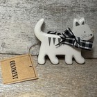 Unbranded Ceramic White Gray Cat Ornament With Black White Bow 2.5x2.5" New
