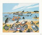 Kliban Cat Vintage 2 Sided Lunch Time, Cats At Beach Lithograph From "catdreams"