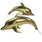 Spi Dolphins Sculpture Brass With Marble Base Dolphins In Seagrass