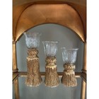 Set Of 3 Candle Holders Gold Tassel Glass Votive Ornate Decor 9”8”7”