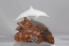 Double Dolphins On Burl Wood Base Sculpture Vintage