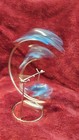 Vintage Opalescent 2 Dolphin Figurine Ceramic Glaze Wave 5" Tall 90s Blue White
