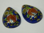 25x18mm Printed Blue Glass Cabochons - Vintage Floral Flat Drop Glass Cab