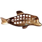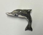 Vintage Dolphin Brooch Copper Tone Rhinestone Eye Pin Sea Life 3" Jewelry F7a