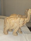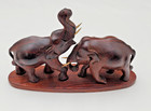 Vintage Carved Wood Elephant Figurine Statue Of Two Elephants