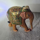 1850's Antique Old Handmade Wooden Elephant Figurine With Hand Painted Motifs