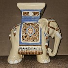 Ceramic Elephant Plant Stand Hand Painted Vintage Crazing Hollywood Regency