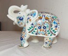Large Vintage Inlaid White Marble Marquetry Stone Elephant Statue Sculpture 17l