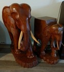 Hand-carved Mid-century Solid Wood Elephant Statues, Indian/asian, Heavy Nice