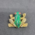 Tiny Green Tree Frog Brooch With Red Crystal Eyes C Clasps