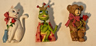 3 Vintage Frog Prince, Cat & Bear Pins Brooch Attached To Valentines Card - Nos