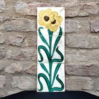 = Set Of 5 Art Nouveau Floral Majolica Tiles, Green W Yellow - Fireplace Or Wall