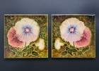 Pair Of Fireplace Majolica Tiles Minton's Poppy Flowers