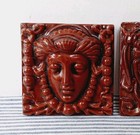 Stunning Unusual Pair Terracotta Tiles Brown Glaze Man And Woman Vintage Decor